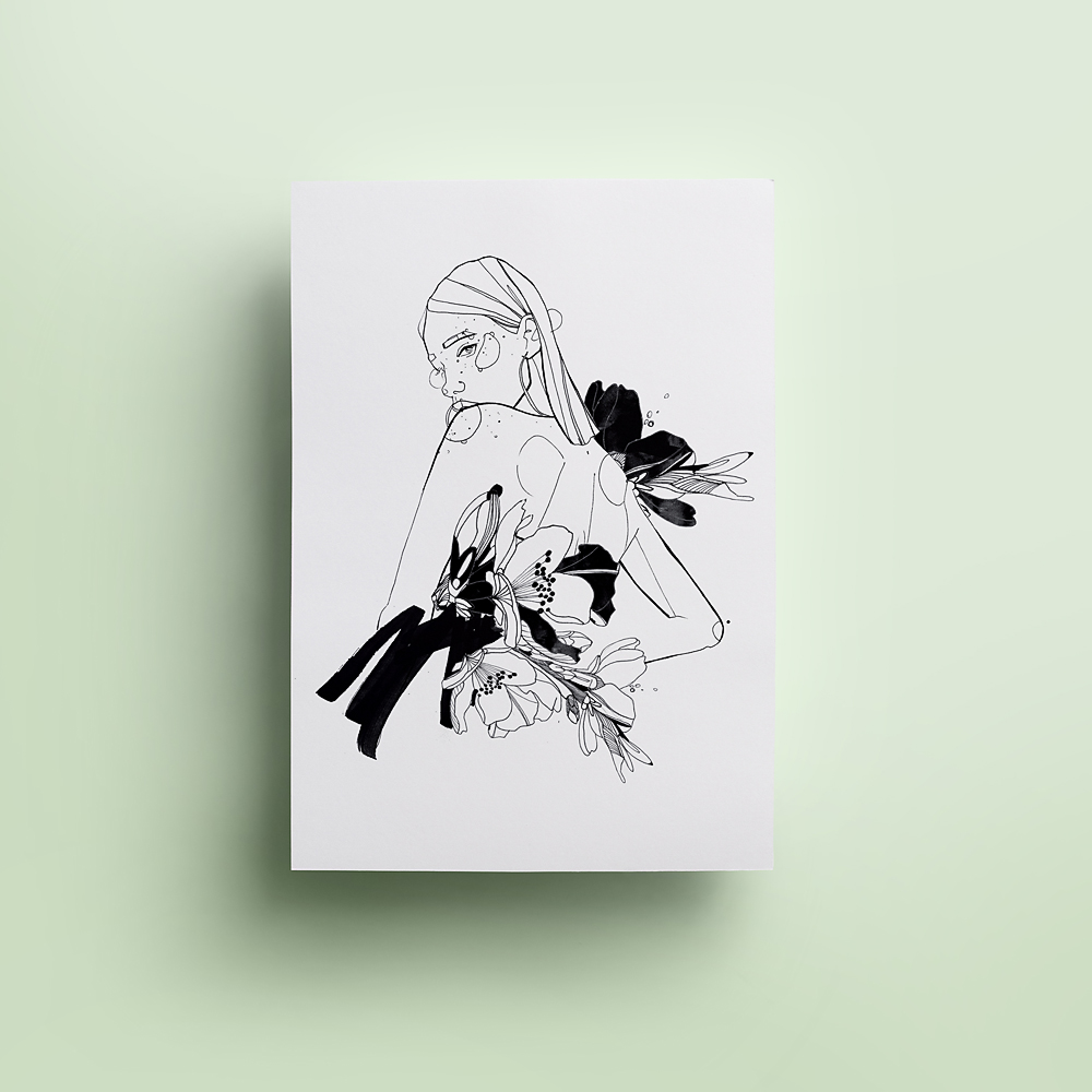 Illustration 'She Wore Black' was created with ink pens, markers & digital colouring.